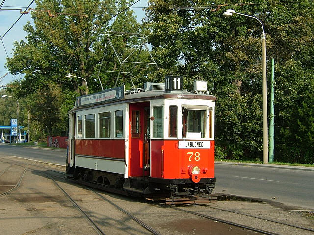 Bild 2: Tw 78 während einer Sonderfahrt nach Jablonec in Vratislavice výhybna im September 2006