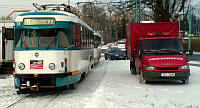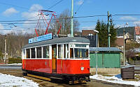 Einen Tag vor der Sperrung der Überlandstraßenbahnlinie Liberec - Jablonec verkehrte am 14.03.2014 der historische Triebwagen Tw 117 vom Typ 6MT nach Fahrplan auf den Linien 5 und 11. Zur selben Zeit stand der Tw 8106