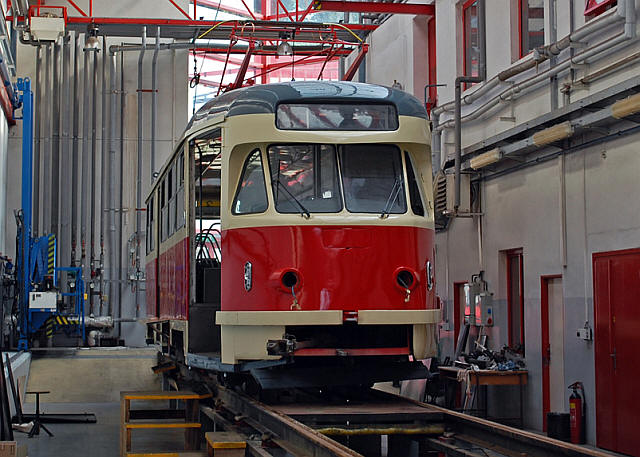 Bild 6: Die neue Farbgebung ist im traditionellen Farbschema gehalten, Tw 17 Depot Liberec 2012.