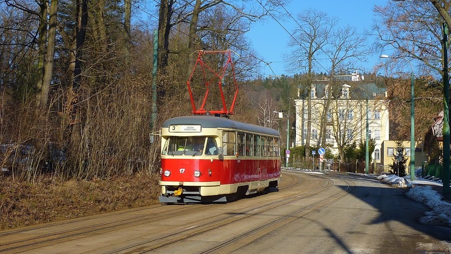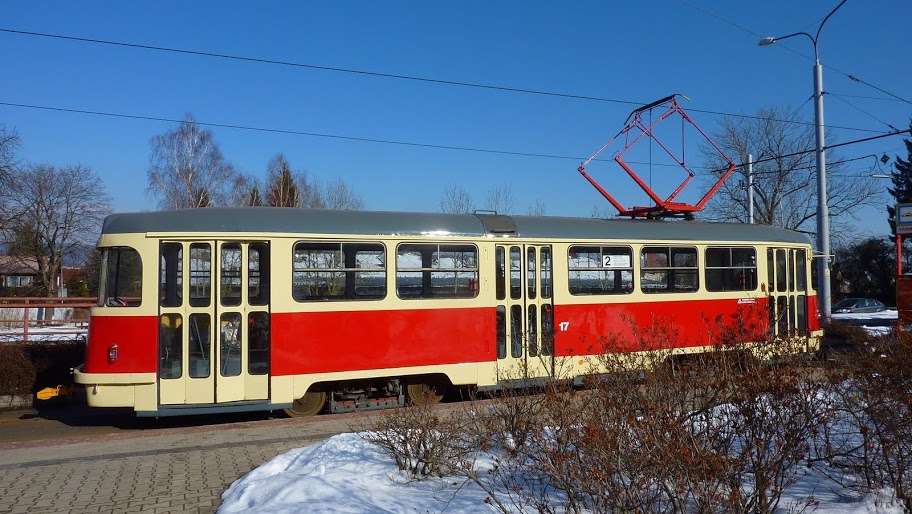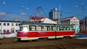 Bild 18: Tw 17 wartet in Lidové Sady auf die Weiterfahrt im März 2013.