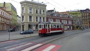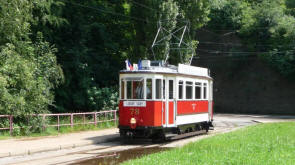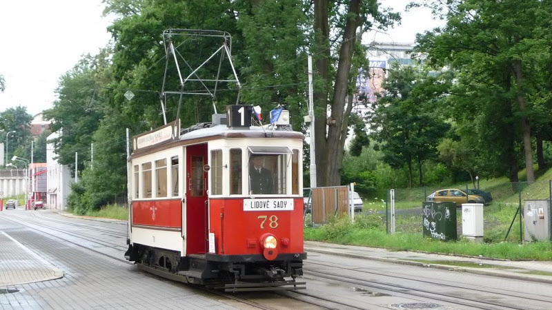 Dieser Triebwagen verkehrt an Feiertagen auf der Sonderlinie 1 zwischen Lidové Sady und Viadukt (1.+ 8.Mai, 5.+ 6. Juli, 28. September, 28. Oktober, 17.November)