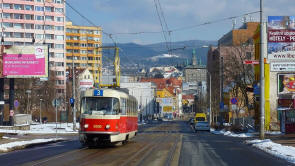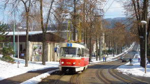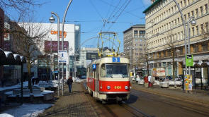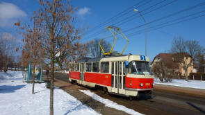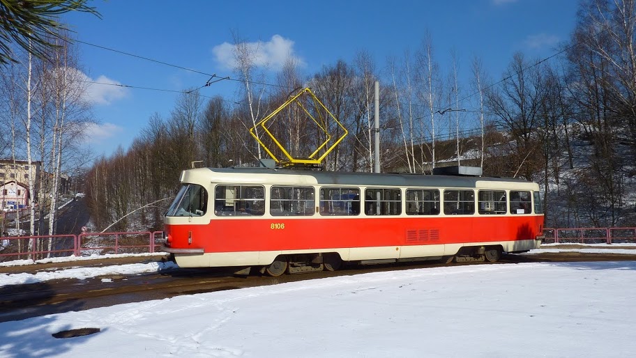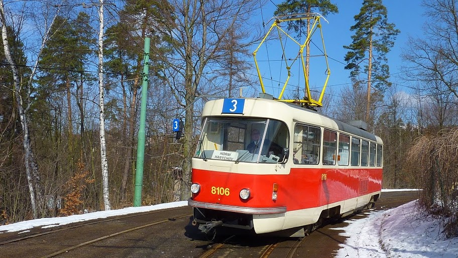 Bild 11: Tw 8106 fährt an der Hst. Spáleniště in Richtung Stadt im März 2013.