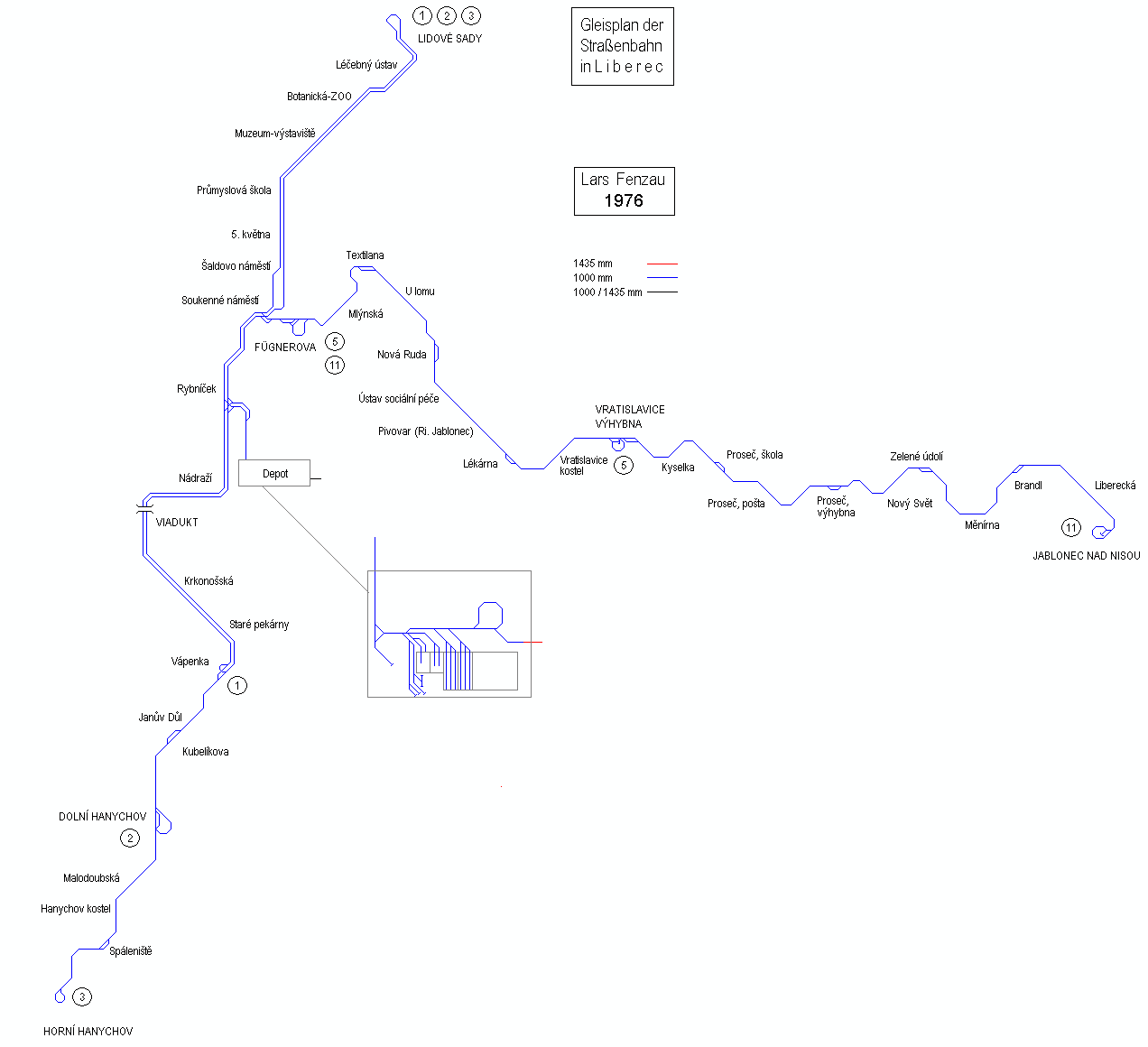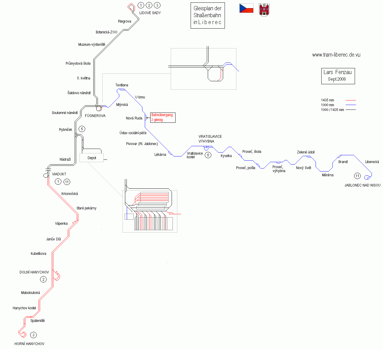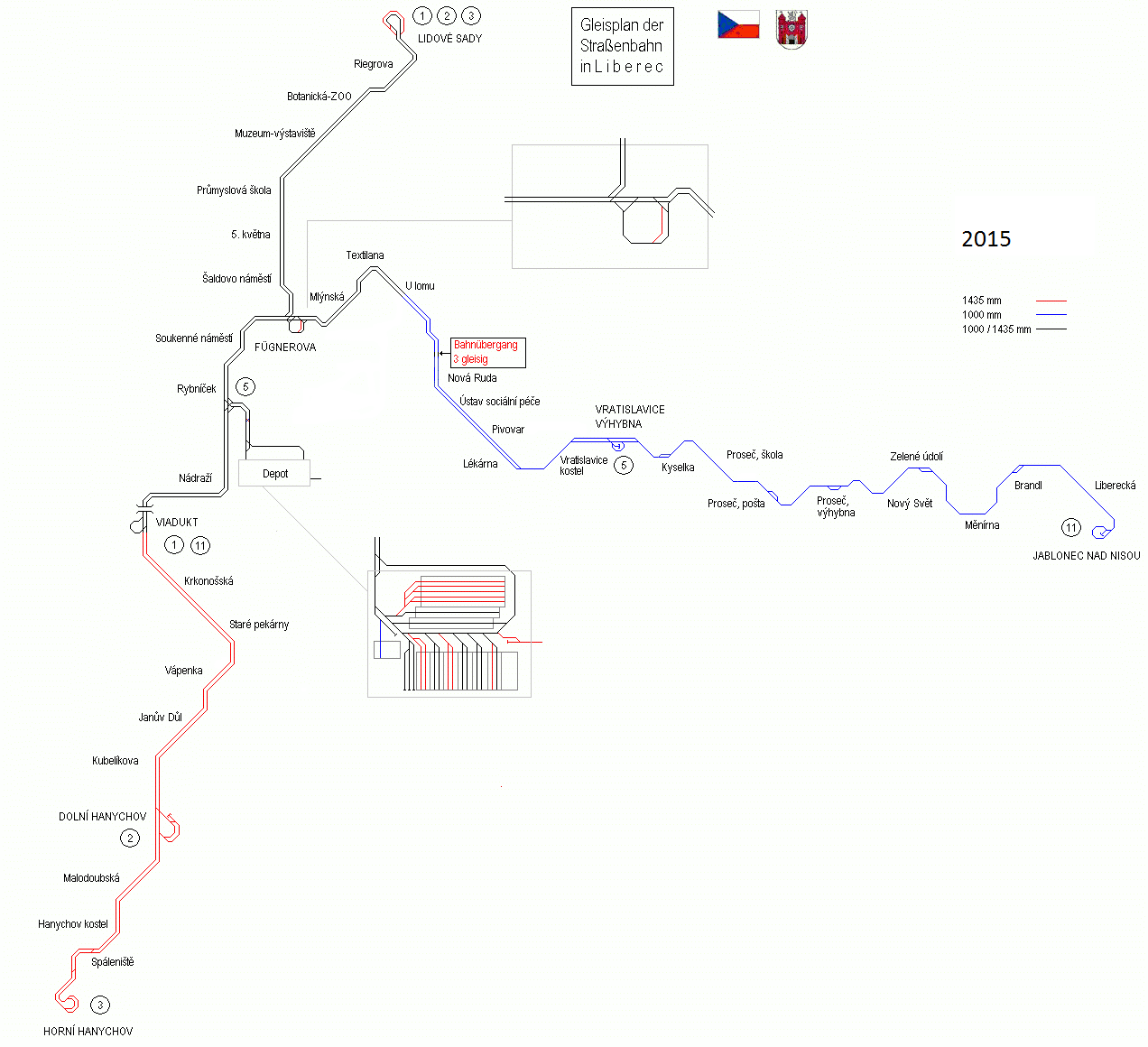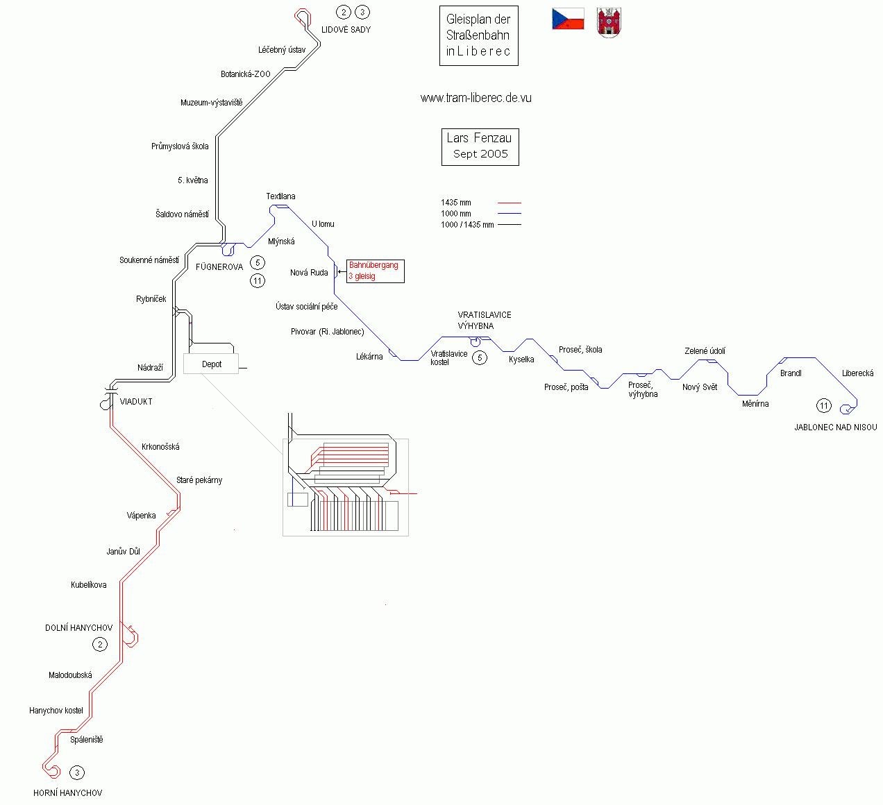 Gleisplan 2005 (Eröffnung der Linie 3 nach Horní Hanychov)