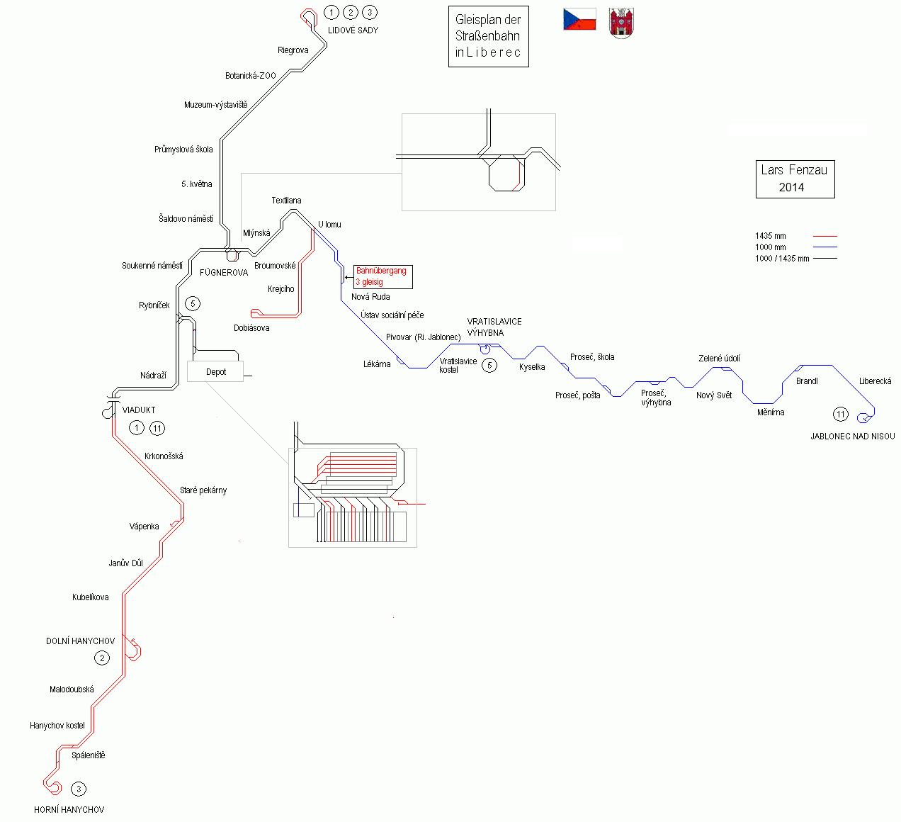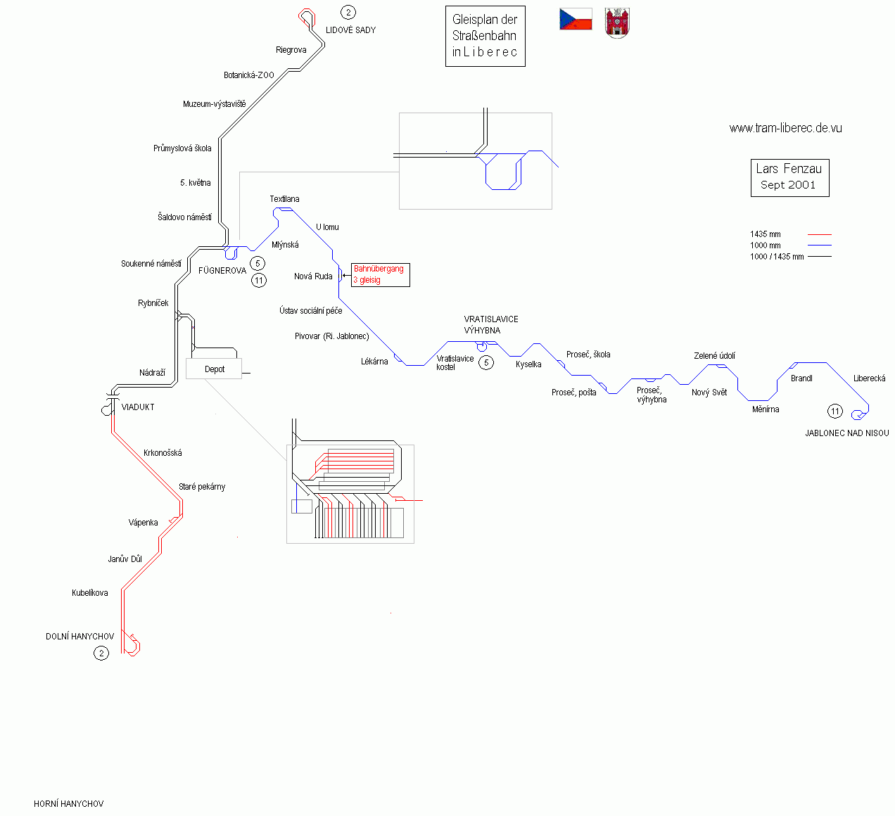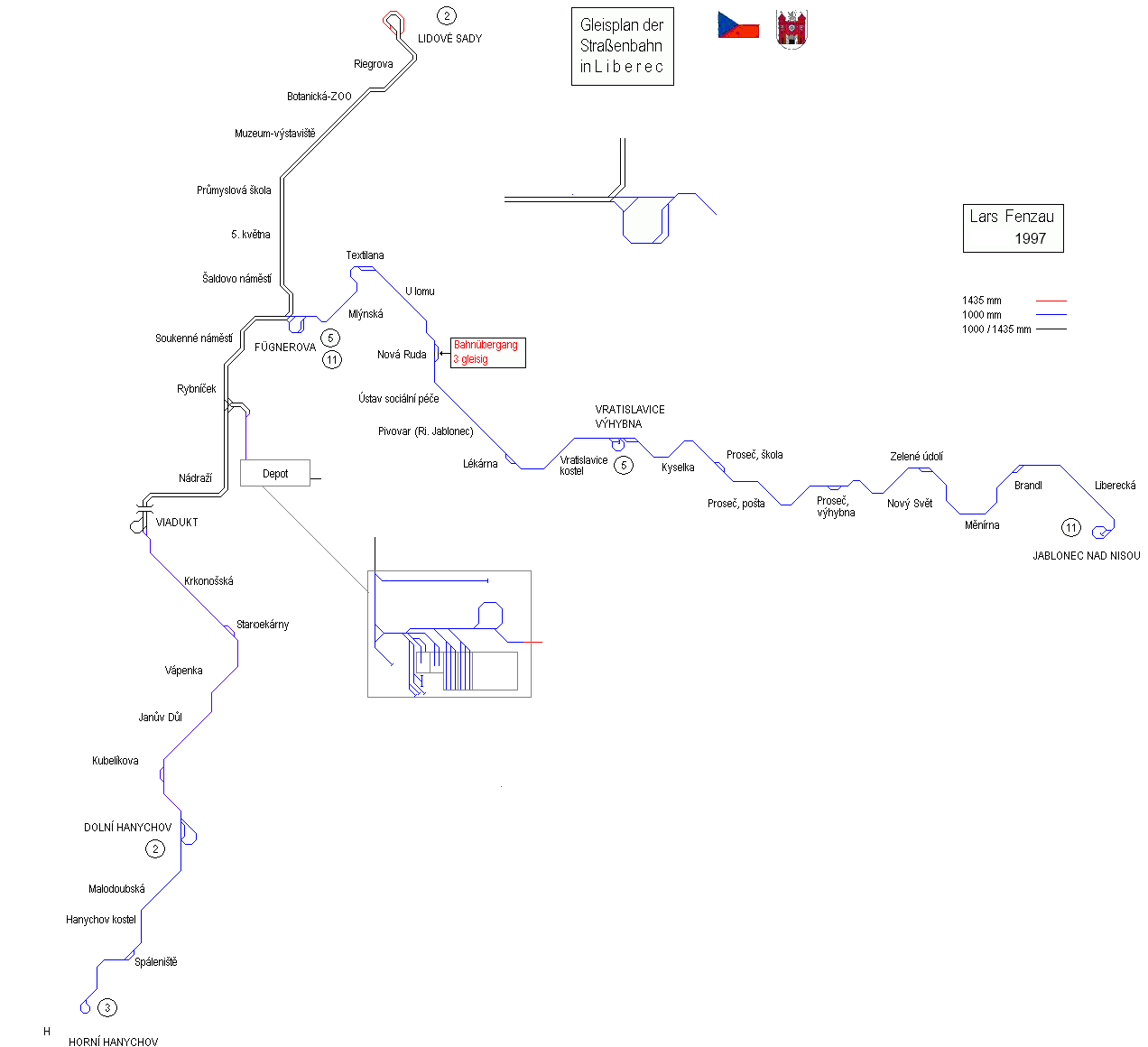 Gleisplan 2001 (Verlängerung der Linie 2 nach Dolní Hanychov)