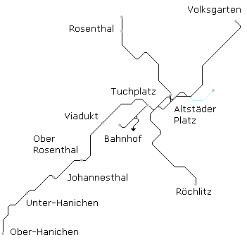 Linie 3 Tuchplatz - Viadukt - Ober Rosenthal - Johannesthal - Nieder Hanichen - Ober Hanichen (5,7 km)
