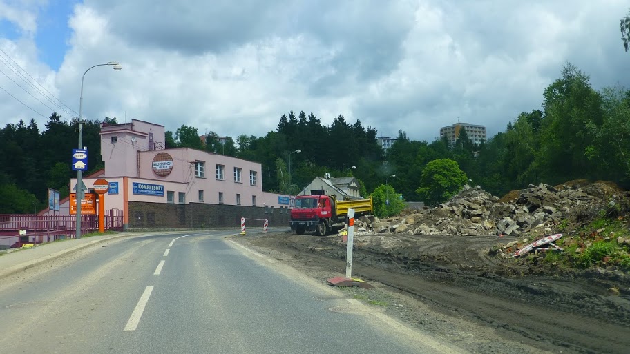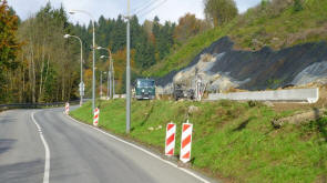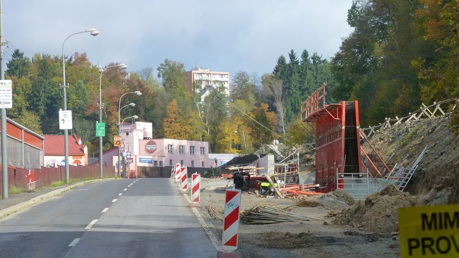 Auch wurde in einer Kurve in Jablonec Fels abgetragen