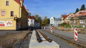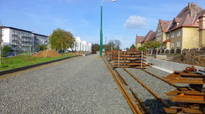 an der ehemaligen Überlandbahn die alten Gleisanlagen demontiert.